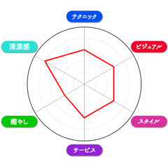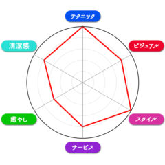 - 6角形パラメーター画像(ビジュアル・スタイル・癒し・サービス・テクニック・清潔感)